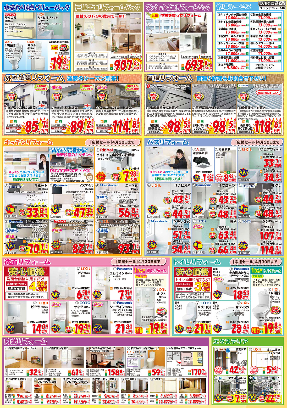 最新チラシ 2026.04.01 4月リフォームチラシ【見積無料】 Contactお問い合わせ・無料見積もりはこちら リフォームに関するご相談は、小さな工事から大きな改修まで、メール・お電話どちらでも承っております。お電話の際には『ホームページを見た』とお伝えください。 必須 お名前 必須 フリガナ 必須 郵便番号 ※自動的に住所が入ります。 必須 住所 必須 メールアドレス 必須 電話番号 必須 連絡の方法 メール電話どちらでも 必須 お問い合わせ内容 お問い合わせ内容をご入力の上、送信してください。 ※当フォームに入力された情報はSSL技術で暗号化され、安全に送信されます。 ※個人情報は当社のプライバシーポリシーに基づき、丁寧に取り扱います。 ※お問い合わせいただいた方には自動で受付確認メール を送信しています。 ※メールが届かない場合は、携帯電話やメールサービスの受信設定で弊社メールがブロックされている可能性がありますのでご確認ください。 ※送信ボタンは 1回だけクリックしてください。 プライバシーポリシーに同意する